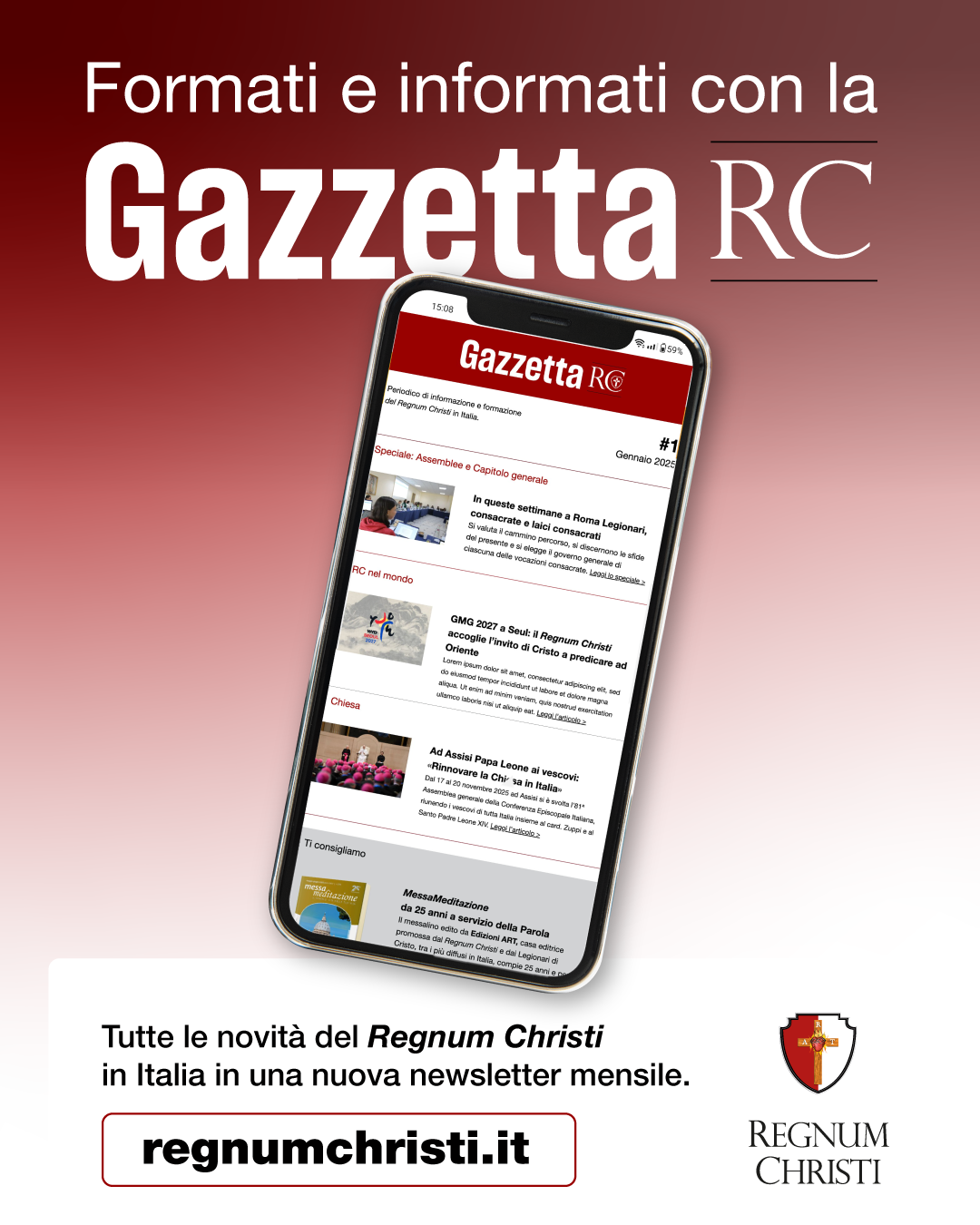 Gazzetta RC è il periodico digitale del Regnum Christi in Italia. Ogni mese propone articoli, interviste, contenuti formativi e informativi su tutte le attività nel Paese.